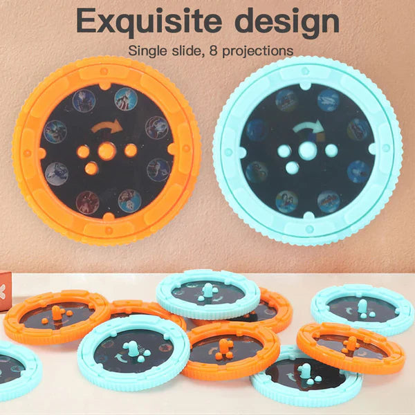 Made of high quality ABS environmentally friendly non-toxic materials, and the smooth edges will not harm the children's small hands.(button Batteries are not included) It is very energy efficient. Not only can be used as a projection, but also can be used as a flashlight, both indoors and outdoors.